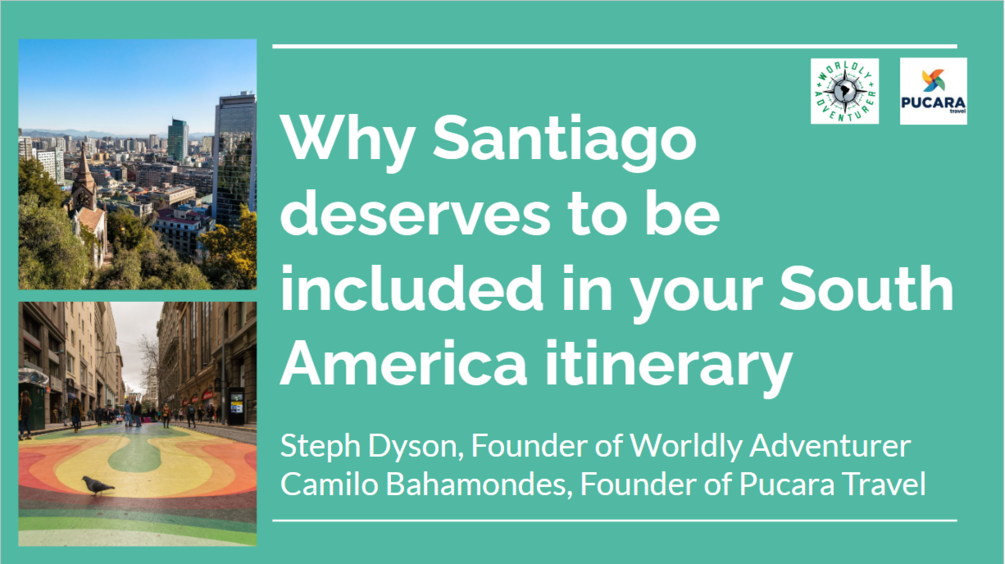 This 45-minute webinar will introduce you to why I love Santiago - and why you will too. It'll cover the most interesting - but barely known - things to do in the city, including incredible markets, world-class dining, and fascinating museums, how to combine Santiago with travel to other parts of the country, and the best day trips, whether you love wine or want to discover one of Chile's most historic cities.